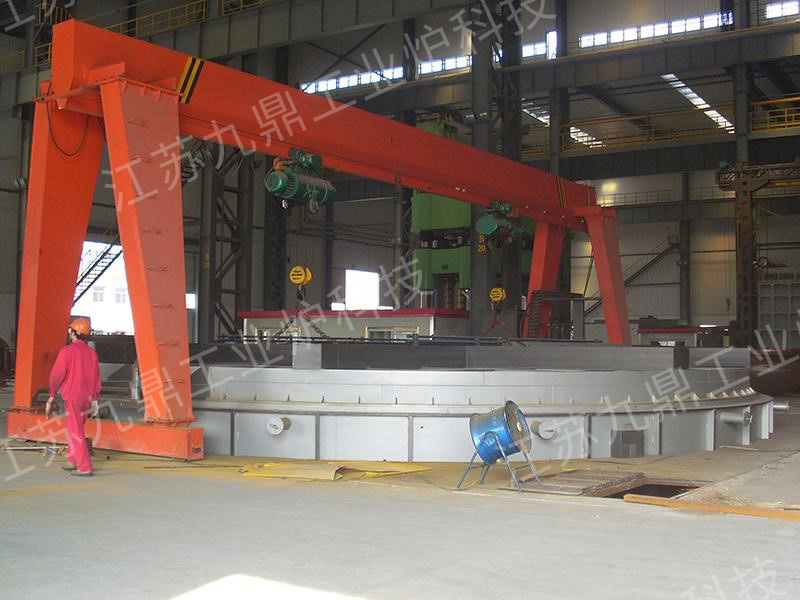 大型井式電阻爐爐蓋殼體亦用鋼材焊接成形,內用耐高溫硅酸鋁耐火纖維 針刺毯疊壓成形,下部用耐熱不銹鋼絲網 及耐熱不銹鋼圓鋼 固定。